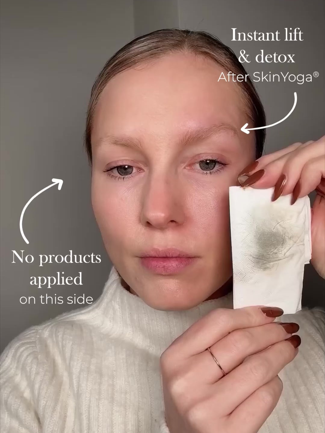 Use deep, slow and firm but gentle sweeping strokes from the centre of the face outwards to stimulate, lift and tone skin